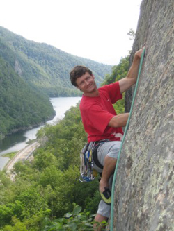 Jeremy began climbing at the age of 14, and promptly abandoned his childhood dream of becoming an Olympic gymnast. His first Adirondacks weekend was an epic: wasp nests on Poke-O; freaky runouts on Big Slide; and a struggle up Wallface after he'd left all the slings in the car. A graduate of the University of New Hampshire, with a Masters in Education from Cornell, he teaches science at Saratoga Springs High School, and in his spare time is a guide for Adirondack Rock and River. Jeremy and his wife Erika live in Glens Falls, NY.